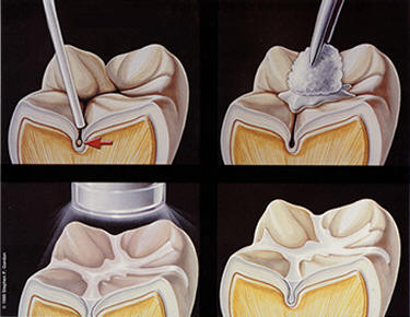 Even if some decay has started in these pits, it can be treated in much the same manner as sealants, although a small amount of decay removal may be needed. Due to the small size of these cavities, this decay removal is often quite painless, and no injections may be needed.
